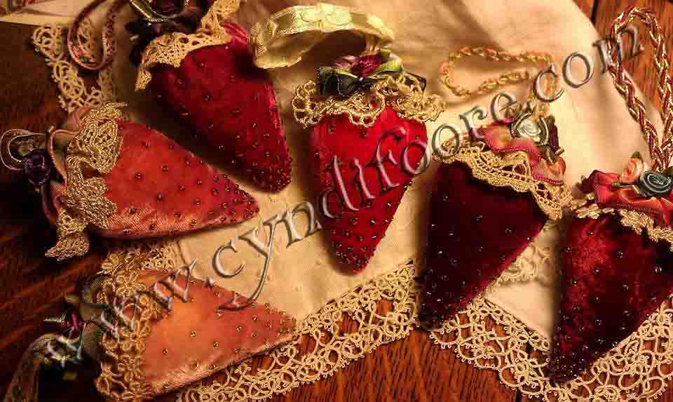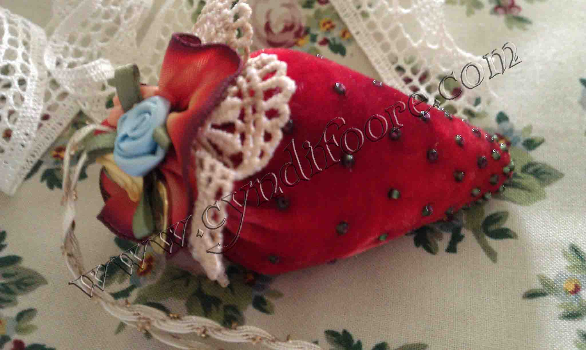 My strawberry emeries are one-of-a-kind. I use only the highest quality fabric, threads, ribbon, beads and lace that I can find. I've recently added some vintage lace and ribbons to my collection to make some of my girls even more unique.