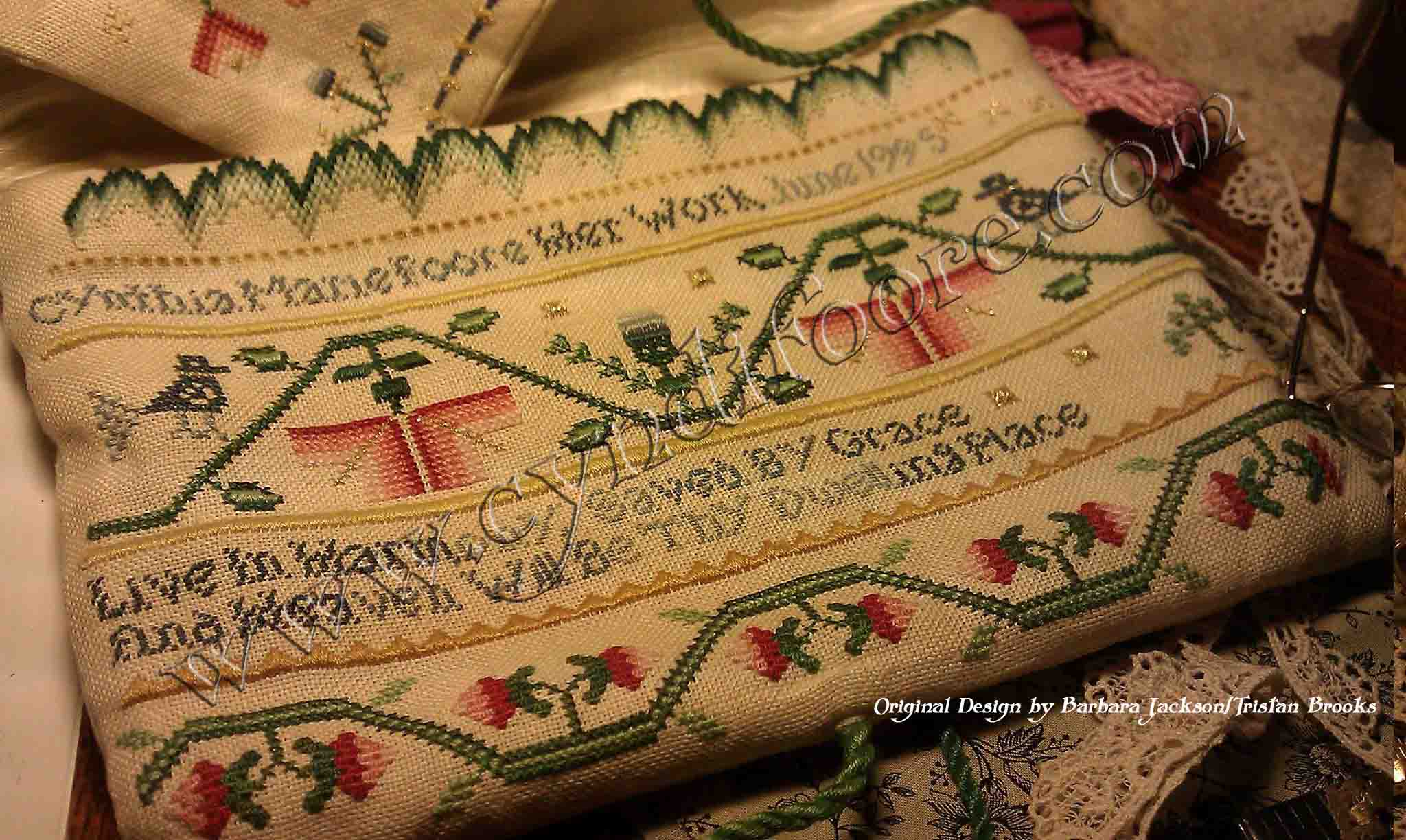 Cyndi feels to be the best teacher you need to be an active student. She has traveled the US, attending needlework seminars from 1994 to the present and has studied with well known teachers such as Darlene O'Steen, Joanne Harvey, Barbara Jackson, Eileen Bennett, Margriet Hogue, Catherine Jordan, and Merry Cox. She has also attended lectures by Betty Ring, Carol Humphrey, Langos Sings and many other experts and museum docents. Cyndi has traveled to the UK and viewed samplers in both the Victoria and Albert and Fitzwilliam museums.