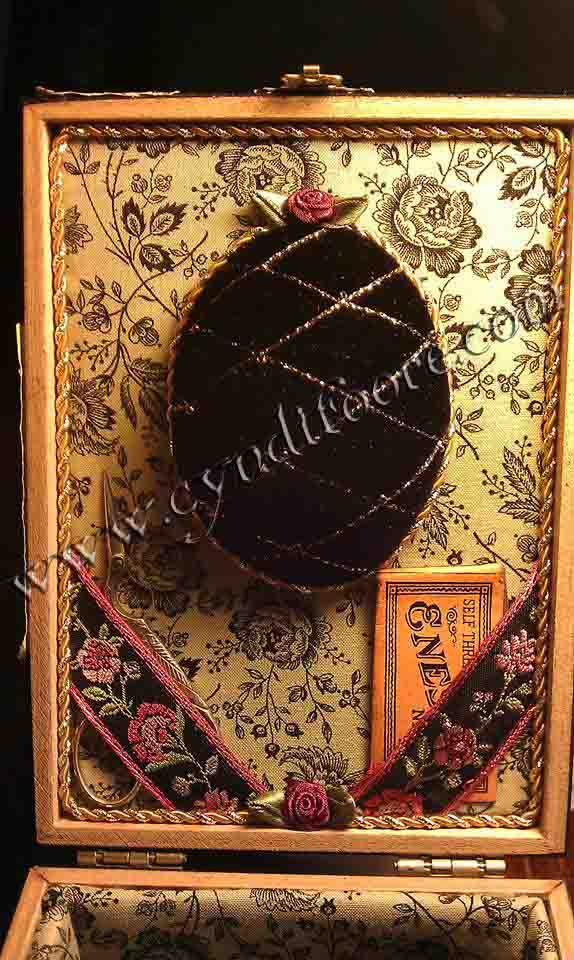 My creativity comes to fruition in my strawberry emeries, tatting, crazy quilting and samplers. My ideas stem from nature, antiques and necessity.